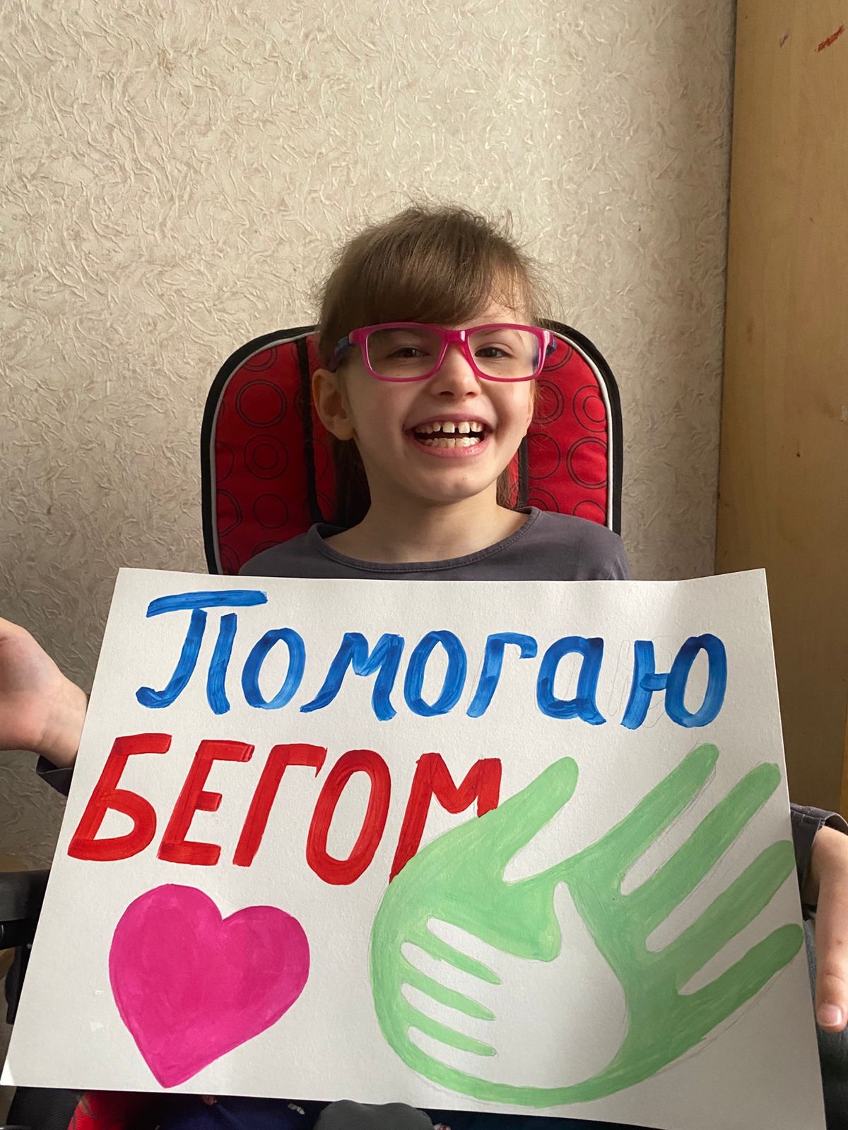 Сентябрь у Вики был очень спортивным. 14 сентября она участвовала в благозабеге и последние метры дистанции прошла сама со своим благобегуном! А 20 и 21 сентября состоялся Московский Марафон, в котором тоже приняли участие наши благобегуны. К сожалению приехать Вика не смогла, но с мамой Аней они приготовили в поддержку замечательный плакат.
